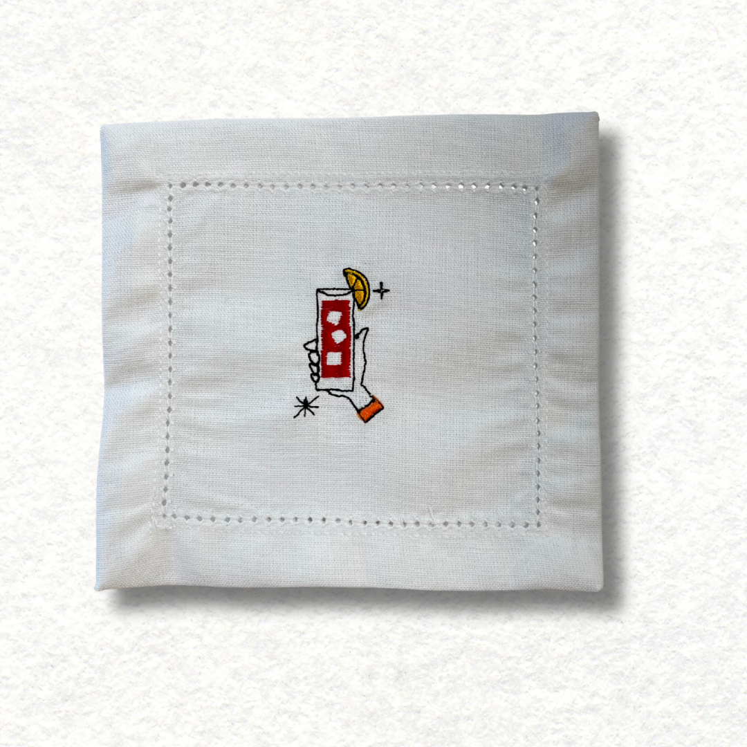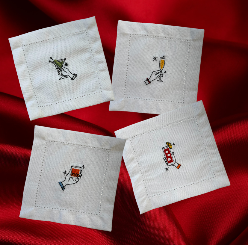 These elegant embroidered cocktail napkins are the perfect place to set your drink before that midnight kiss: functional, festive, and just a little necessary.