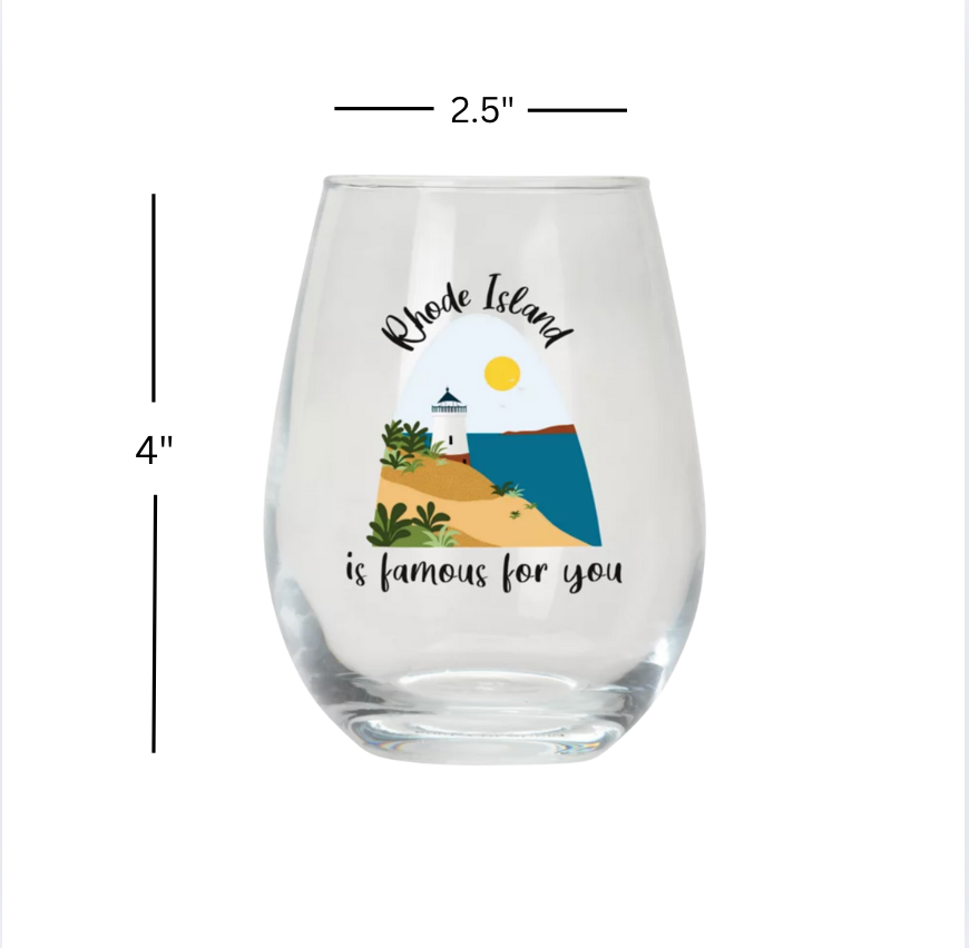 Stemless wine glass "Rhode Island Is Famous For You"